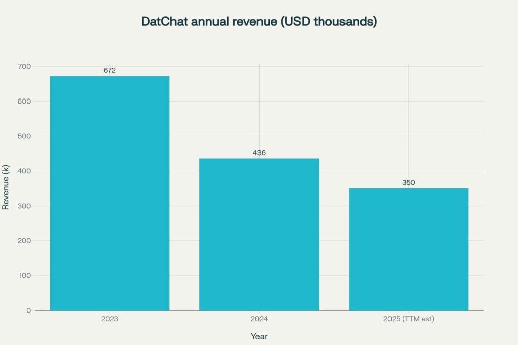 - Annual revenue trend (2023–2025 TTM est) — ultra‑low and declining.